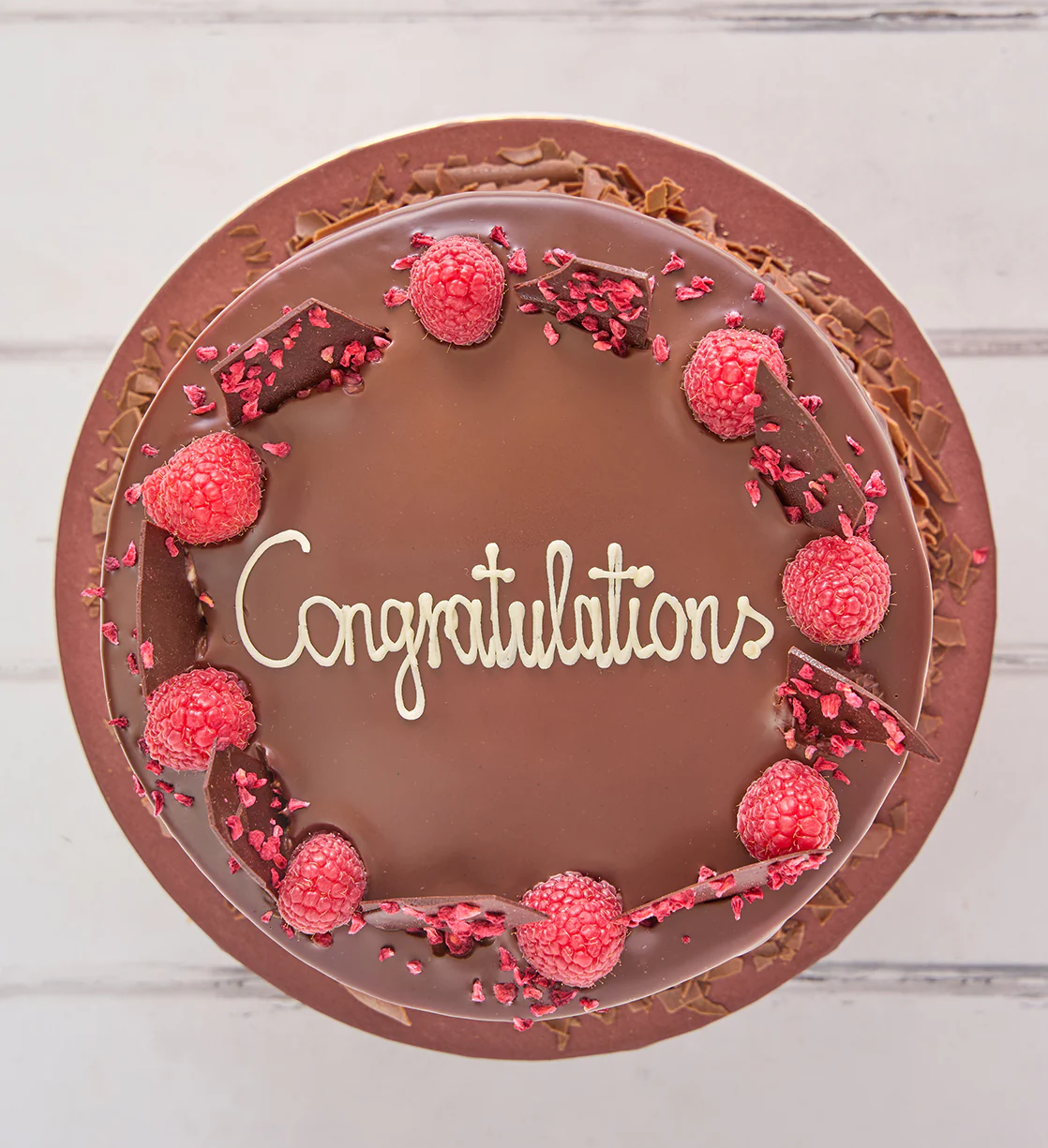 One of our bestsellers, and for good reason. A rich chocolate cake with a raspberry coolie filling with chocolate ganache. Garnished with fresh raspberries and chocolate shards. A timeless classic.