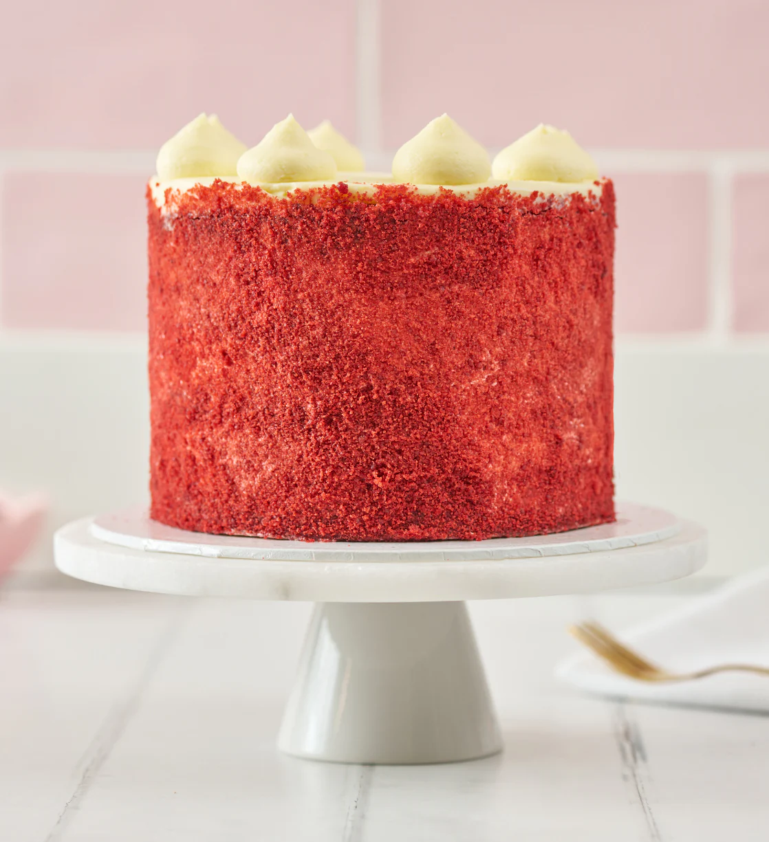 Our iconic Red Velvet, made gluten-free! Three layers of gluten free sponge piped and filled with smooth cream cheese and iced with a thin layer vanilla buttercream. Simply beautiful, utterly delicious. Available for delivery Nationwide.